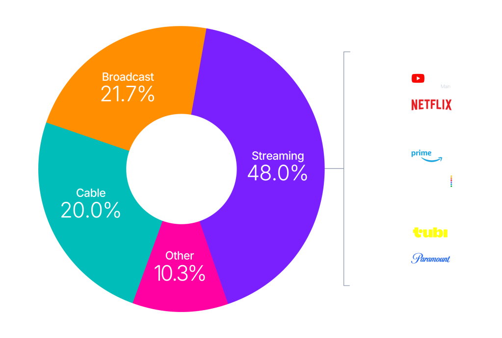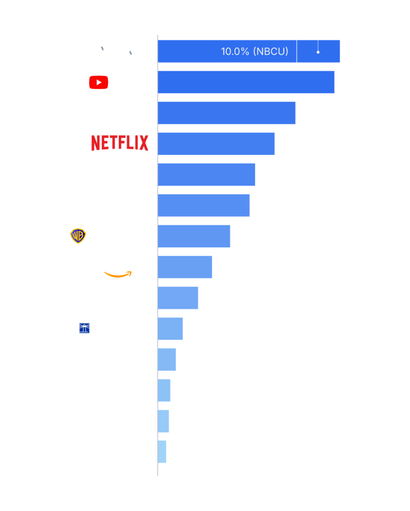 - La diffusion linéaire via des applications vMVPD (par exemple, Hulu Live, YouTube TV) est exclue de la catégorie de diffusion en continu. Hulu SVOD" et "YouTube Main" dans la catégorie "streaming" se réfèrent à l'utilisation des plateformes sans inclure le streaming linéaire.