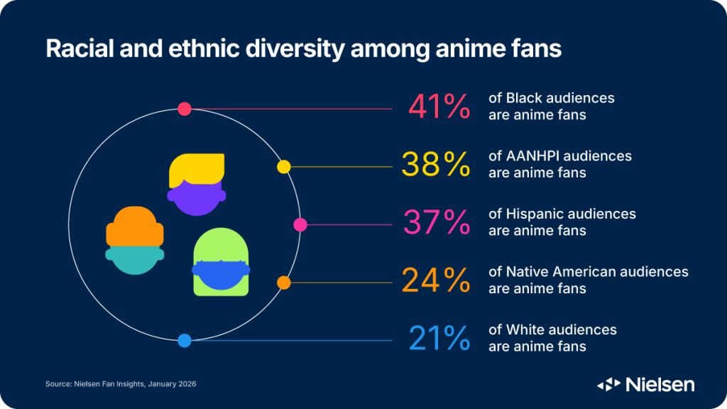 Furthermore, anime fans demonstrate significant racial and ethnic diversity, with high identification rates among most demographics.