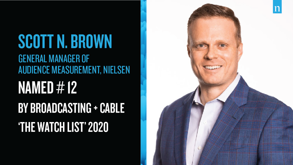 Scott N. Brown, Nielsen’s GM of Audience Measurement was recognized by Broadcasting+Cable in its “2020 Watch List” as one of the top 25 media executives charged with the future of TV. Scott ranked at No. 12 on this year’s list, along with other well-known CEOs and C-suite level executives from prominent companies in the media industry.