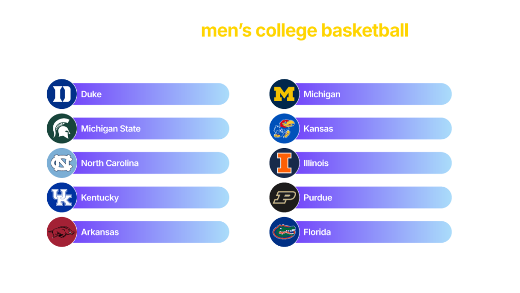 In addition to their fandom, sports fans are notably some of the most brand conscious and brand loyal consumers around, and NCAA Tournament audiences are no different. Sixty-one percent of college sports fans are more likely to purchase from brands that partner with creators, personalities, or organizations connected to their fandoms and interests.12 As well, 52% of NCAA women’s and 43% of NCAA men’s basketball fans are more likely to engage with a brand because a college athlete promoted it.12