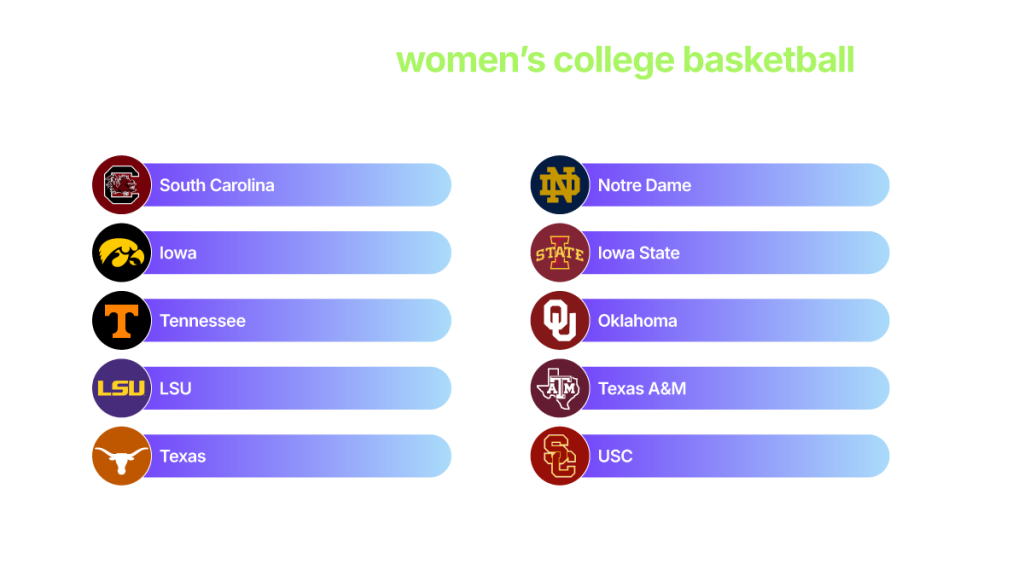 Although they are nationally broadcast, the tournaments have created storylines that drive local engagement opportunities for savvy regional and local marketers. For example, viewers in Chicago flocked to watch the women’s game between Notre Dame and TCU in anticipation that Hailey Van Lith would be drafted by the Chicago Sky.9 This local-level engagement also builds connections with fans in the women’s professional game, with NCAA tourney viewers in Dallas, the market with the first pick in the 2026 WNBA Draft, being 3.5x more likely to be very interested in the WNBA.10 Nielsen also exclusively created a ranker of the most watched college basketball teams to help marketers identify further opportunities on a local level.